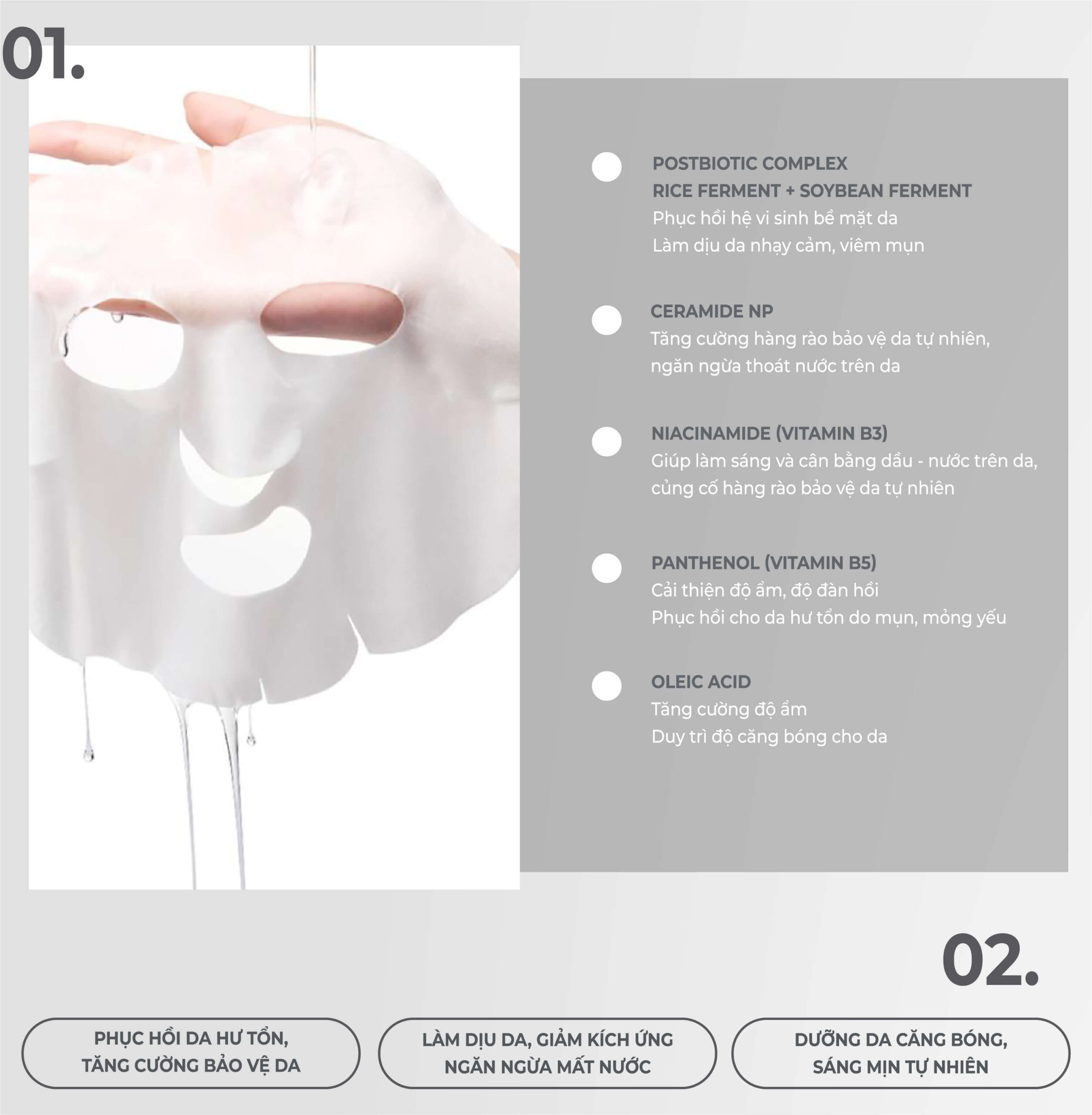 Tinh chất thẩm thấu nhanh, ôm sát da, mang lại cảm giác dễ chịu khi sử dụng, phù hợp với mọi loại da, kể cả da nhạy cảm.