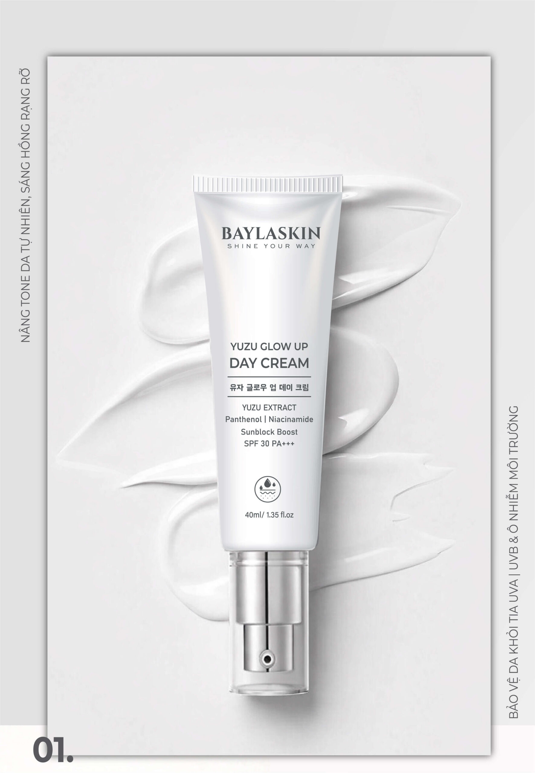 Yuzu Glow Up Day Cream SPF 30 PA+++ là kem dưỡng ban ngày kết hợp nâng tone tự nhiên và chống nắng dịu nhẹ, giúp làn da sáng hồng rạng rỡ mà không gây trắng bệch.